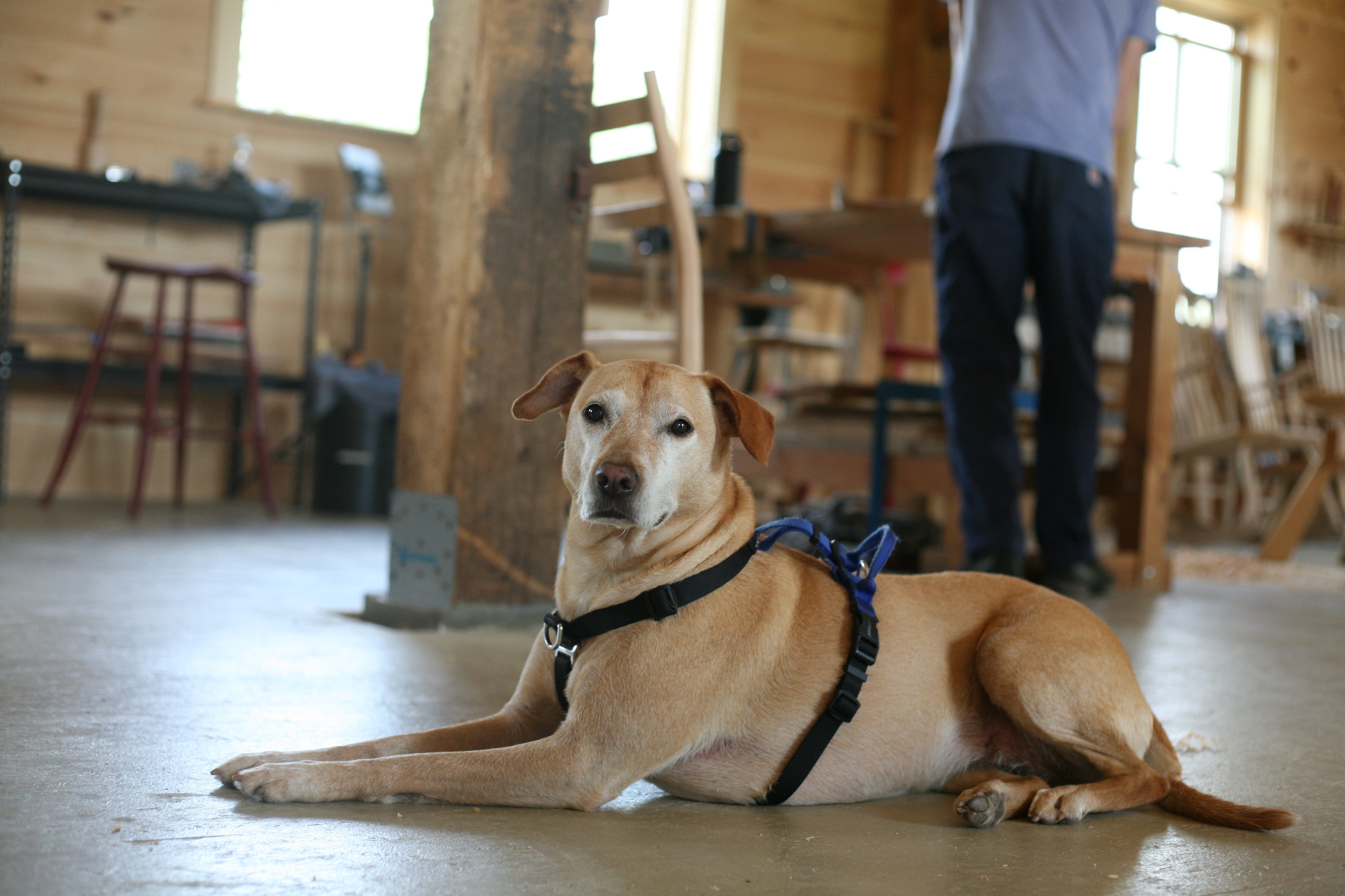 Peter Galbert dropped in for quick sharpening demonstrations and the visits with Georgia (the most famous and most photographed dog in chairmaking).